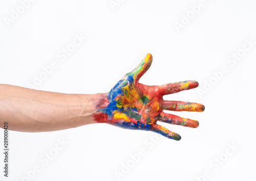 Man hand in colorful on white background