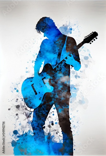 man holding playing a guitar, map, illustration with musical instrument