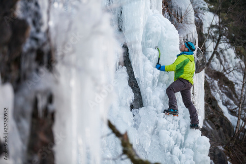Man ice climbing at Trojan Horse