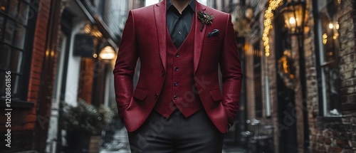 Man in burgundy three-piece suit.