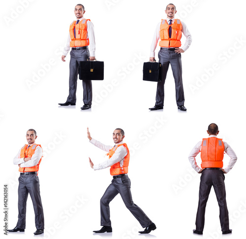 Man in life jacket isolated on white