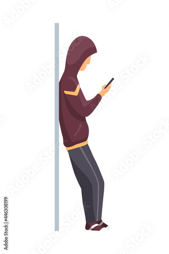 Man in subway underground train car. Public transport, urban underground tube mass transit with standing passenger. Concept design