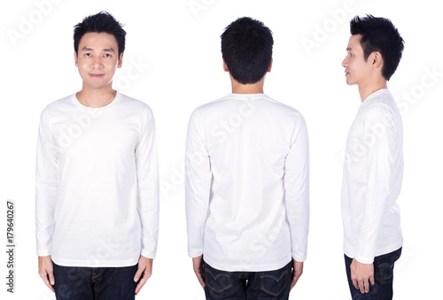 man in white long sleeve t-shirt isolated on white background