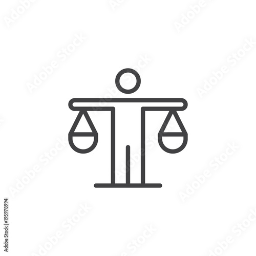 Man is holding the scales outline icon. linear style sign for mobile concept and web design. Efficiency, decision simple line vector icon. Symbol, logo illustration. Pixel perfect vector graphics