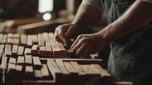 man owner a small furniture business is preparing wood for production. carpenter male is adjust wood to the desired size. architect, designer, Built-in, professional wood, craftsman, workshop.