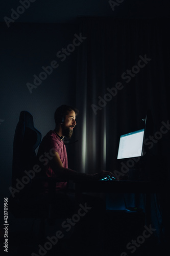 Man playing in online computer games