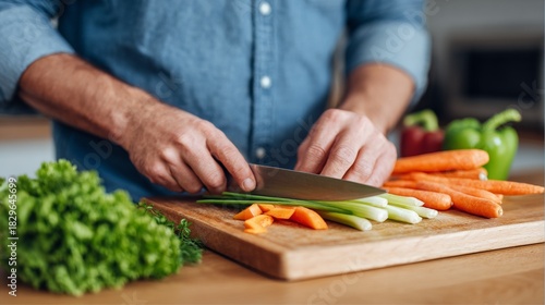 Man preparing vegetables in kitchen.