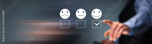 man select face emoticon on virtual screen at smartphone