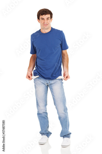 man showing empty pockets