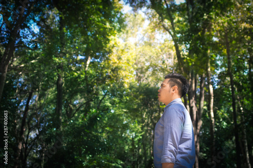 Man standing alone in forest.