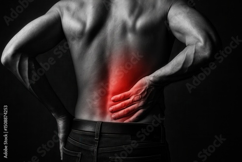 Man suffering from backache, lumbar pain or kidney inflammation