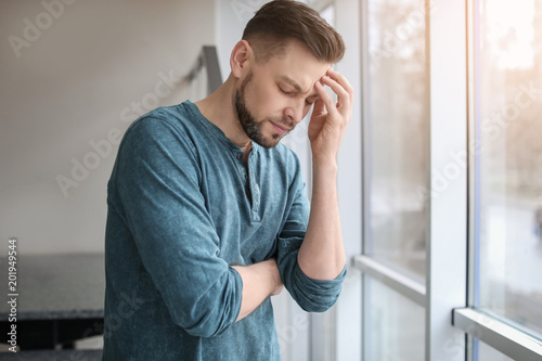 Man suffering from headache at home