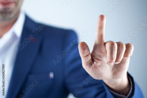 man touching in screen on dark background