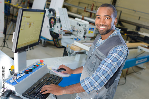 Man typing at factory computer