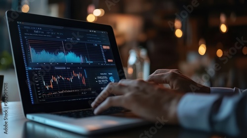 Man using laptop data analysis focusing on growing sales graph business data analytics Concept Business Analytics