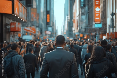 Man Walking Through City Crowd in Sunlight4