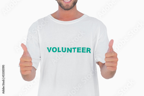 Man wearing volunteer tshirt giving thumbs up