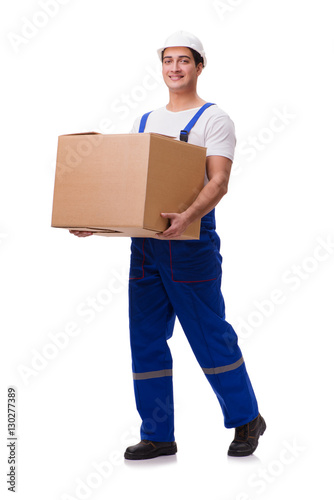 Man with boxes isolated on white