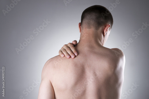 Man with pain in shoulder. Pain in the human body