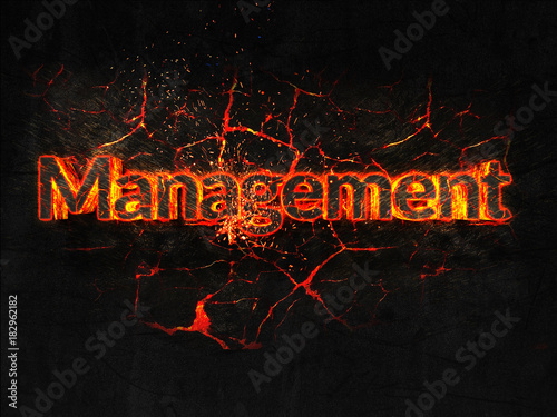 Management Fire text flame burning hot lava explosion background.