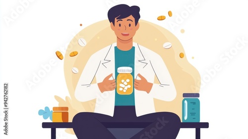 Managing Acid Reflux: Medication and Lifestyle Changes for Relief - Flat Design Illustration