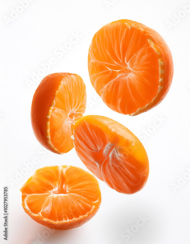 mandarin oranges slices, isolated on a white background