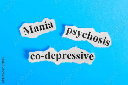 Mania co-depressive psychosis text on paper. Word Mania co-depressive psychosis on a piece of paper. Concept Image. Mania co-depressive psychosis Syndrome