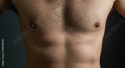 Man's torso with defined abs and chest muscles showcasing fitness and body positivity concept art