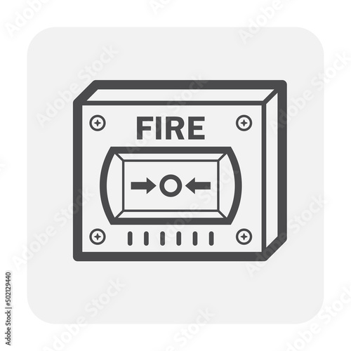 Manual call point, mcp vector icon. Security equipment for control fire alarm, sprinkler system. Include panel, button switch in box, break glass for pull, press in emergency for safety of building.