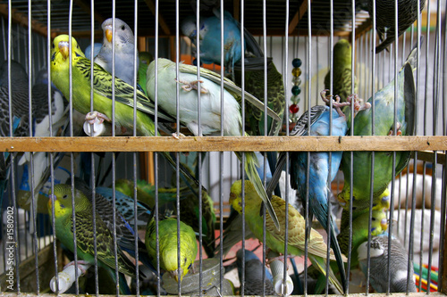 many budgerigars in cage