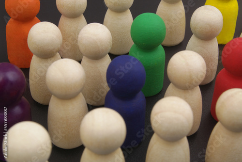Many different people figures on black background. Multicultural, uniqueness, individuality, and recruitment concept.