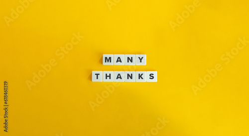 Many thanks Phrase on Block Letter Tiles on Yellow Background. Minimal Aesthetic.