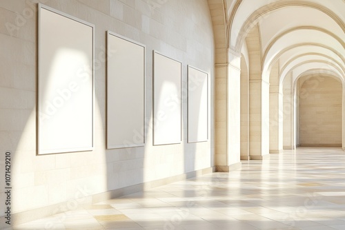 Many white posters on the wall in the interior of the Mediterranean style, photo mockup