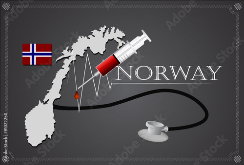 Map of Norway with Stethoscope and syringe.