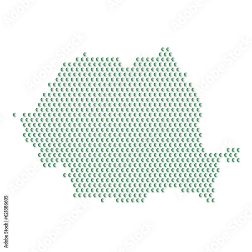 Map of the country of Romania with green half moon icons texture on a white background