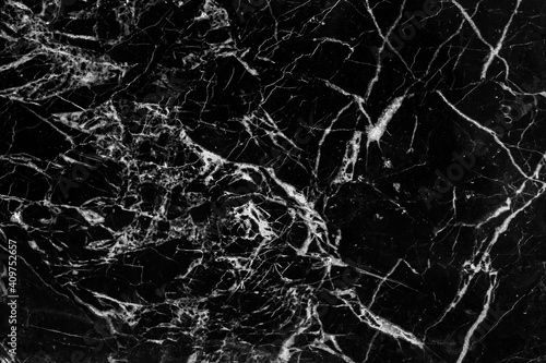 Marble black luxury tile with abstract white pattern of cracks grunge wall texture background.