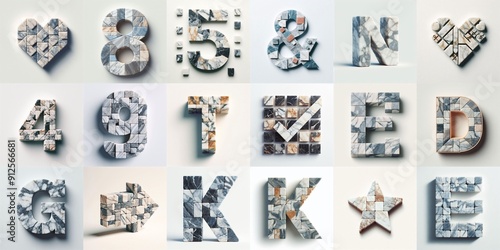Marble stones Lettering Typeface. AI generated illustration