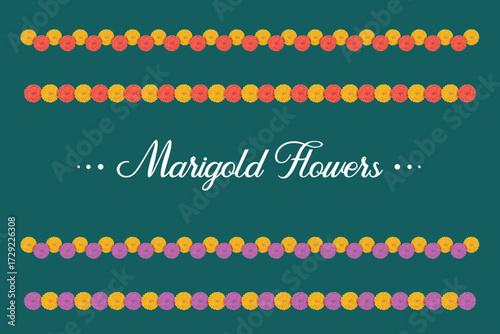 Marigold Flower Garland Hanging On Auspicious Traditional Hindu Festival. Vector Illustration for Festive Elements