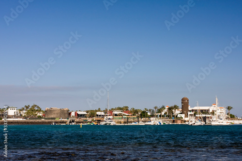 Marina with lighthouse in Caleta de Fuste, Fuerteventura, Canary Islands, Spain, Europe