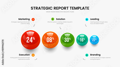 Market Visualization Five Option Chart Frame Design. Creative Innovation 5 Element Diagram Presentation Template. Advertising Analysis Slideshow Layout Vector Illustration.