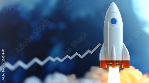 Marketing and Icon concept. Rocket launching with upward trajectory and smoke in the background.