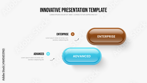 Marketing Showcase Two Element Infographic Presentation Design. Financial Report Slideshow Layout Vector Illustration. Professional Portfolio 2 Step Diagram Slide Template.