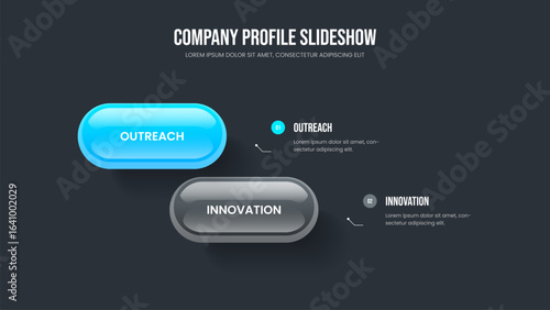 Marketing Visualization Two Option Diagram Slideshow Design. Corporate Briefing Presentation Template Vector Illustration. Company Planning 2 Step Infographic Frame Layout.