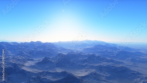 Mars like red planet, with arid landscape, rocky hills and mountains, for space exploration and science fiction backgrounds.