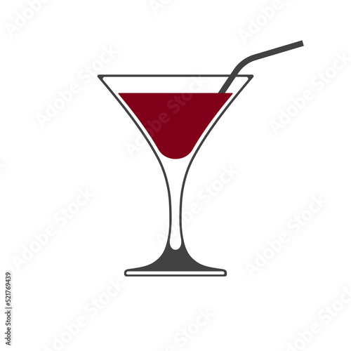 Martini glass with straw icon isolated on white background