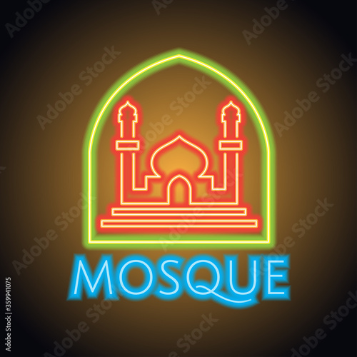 masjid or islamic centre neon sign for Muslims Pray. vector illustration