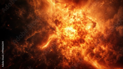 Massive cosmic explosion with fiery clouds and energy bursts in deep space, symbolizing destruction and creation.