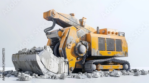 Massive Industrial Excavator Wreaking Havoc on Concrete Debris