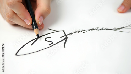 Mastering Artistic Simplicity: Flat Hand Drawing with Black Pencil on White Paper - A Cute Vector Illustration Showcasing Skill and Smart Business Tone