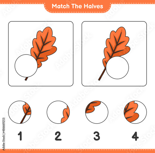 Match the halves. Match halves of Oak Leaf. Educational children game, printable worksheet, vector illustration